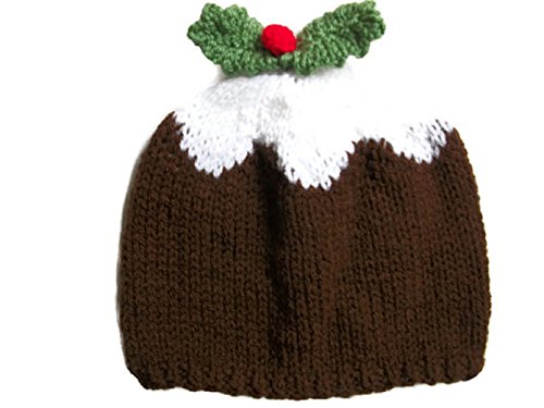 A novelty Xmas pudding hat. Entirely hand knit and stitched. Available in all sizes:0-6 month (13-15 inches). 6-12 month(15-18 inches). kids (17-20 inches, approx 2-10 year). ladies/teen (21-23 inches). men (22-24 inches).